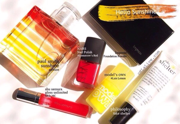 With fresh scent of Paul Smith Sunshine edition for women, combining two shades of nail polishes from Nars and Model’s own. Gliding a few sunscreen from Philosophy and smoothing skin with Impress Foundation Powder and finally adding a hint of succulent Shu Uemura gloss.